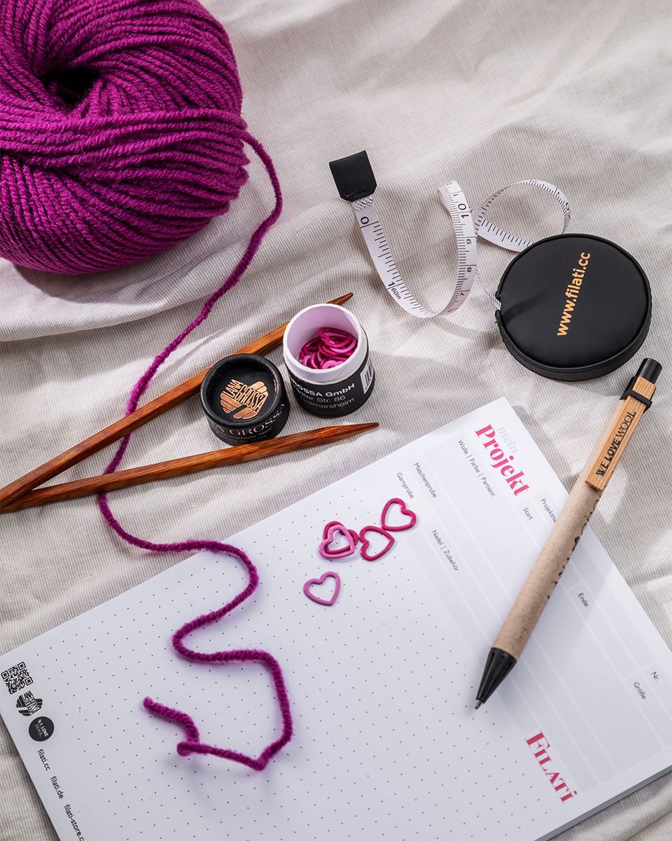El bloc de proyectos FILATI es el compañero ideal para quienes desean organizar sus ideas de tejido y ganchillo, plasmándolas en papel, y no solo en su mente. Diseñado especialmente para proyectos creativos, sus páginas con un diseño claro te ayudan a tener todo bajo control, desde el primer borrador hasta la última puntada.