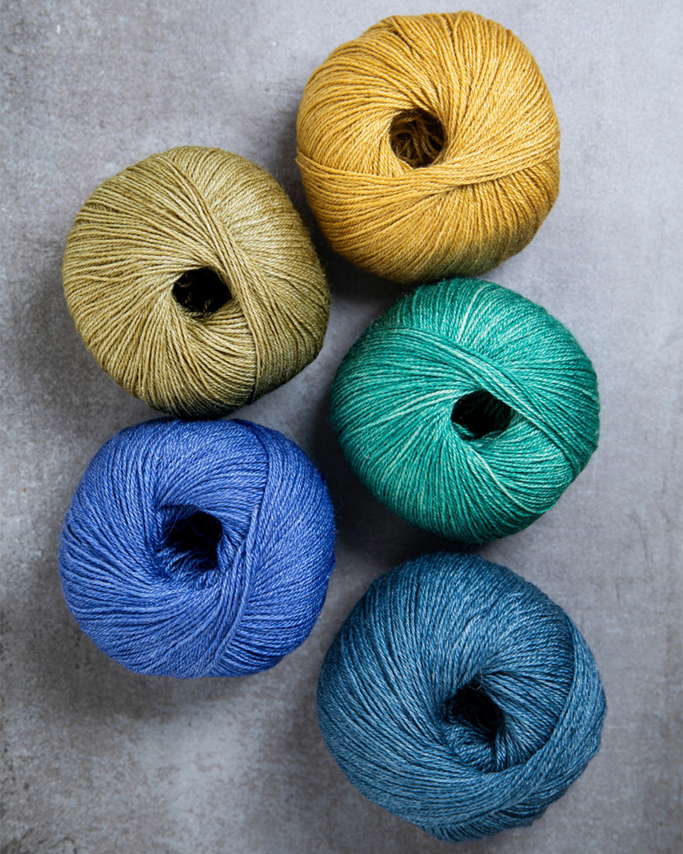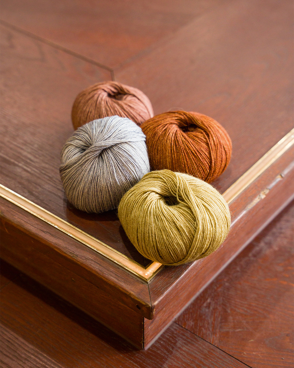 Hilo delicado y clásicamente retorcido de seda morera y merino envuelto en fibras de mohair.