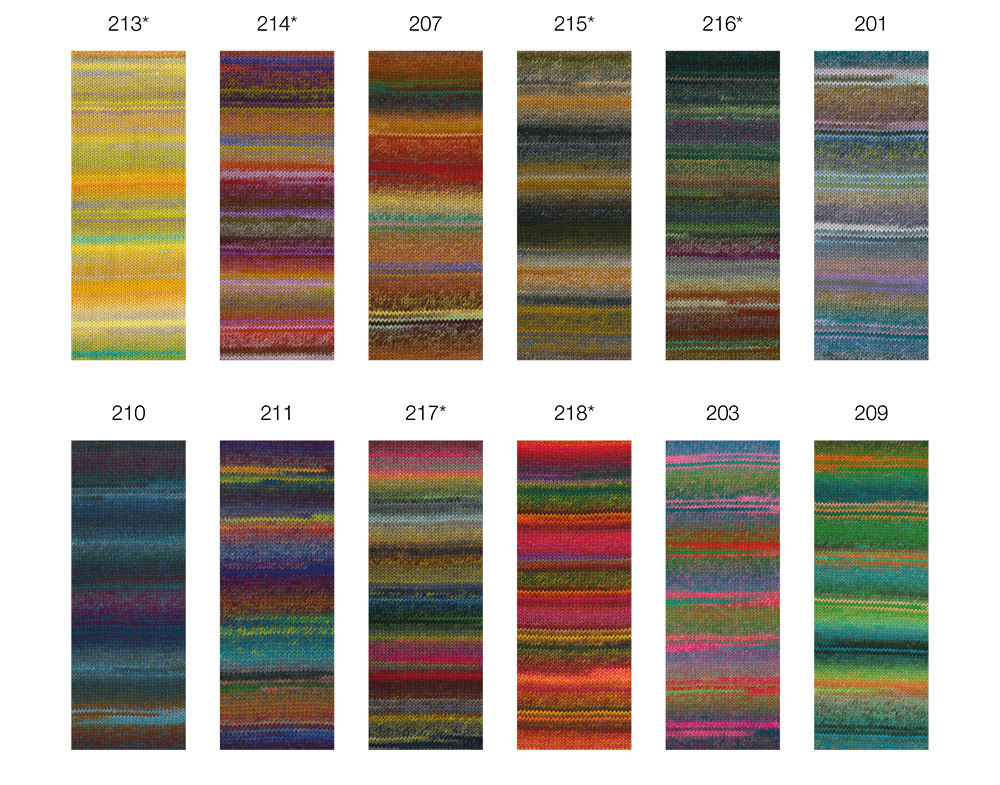 Colorissimo II es un fascinante hilo con degradado de color hecho de 100 % lana merino, que, con sus combinaciones de colores intensas y armoniosamente coordinadas, convierte cualquier prenda de punto en una pieza llamativa. Es agradablemente suave, cálido y al mismo tiempo ligero, ideal para suéteres, chales, bufandas o accesorios coloridos. Gracias a su largo degradado de color, al tejer se crean transiciones suaves y patrones vivos sin ningún esfuerzo.