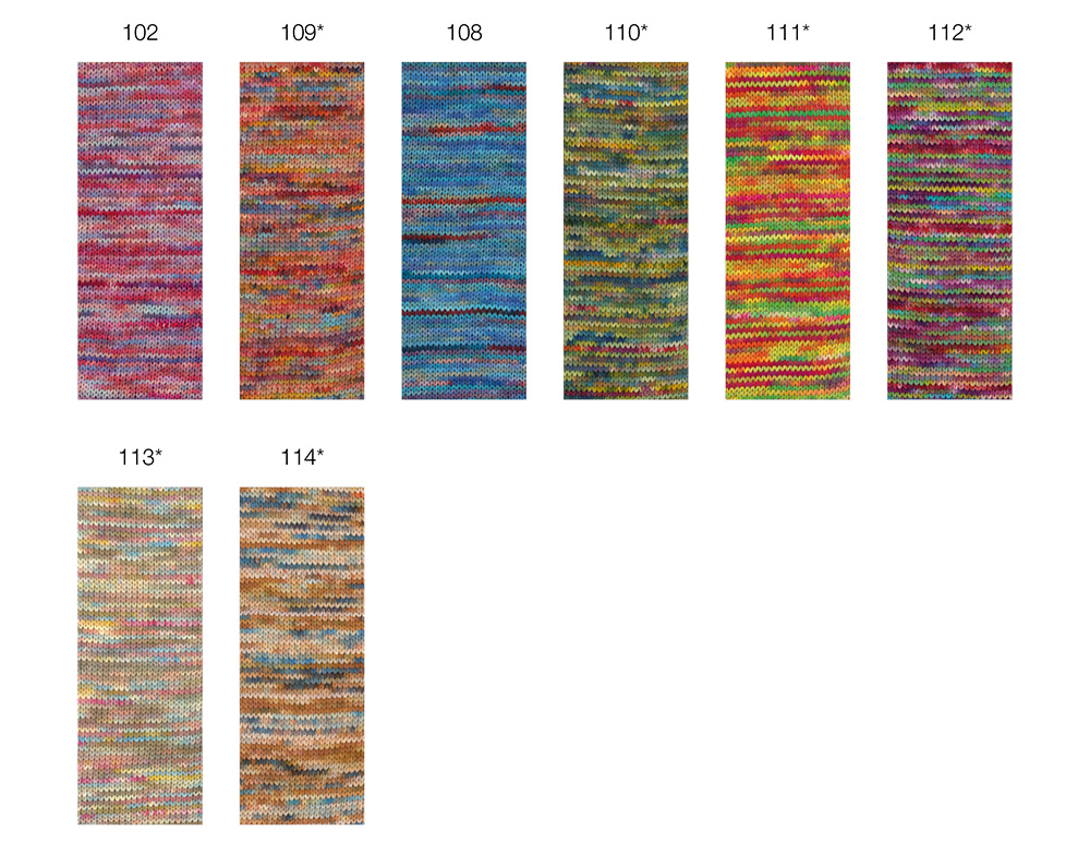 Cotonella Multi es un hilo de verano suave de 100 % algodón pima, que encanta con sus efectos de estampado multicolor vibrantes. Los alegres degradados de color se crean gracias a un estampado multicolor que, al tejer, genera automáticamente un patrón variado y armonioso, sin necesidad de cambiar de color.