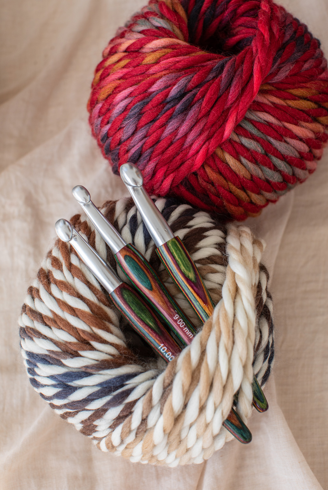 Perfecto para tejidos gruesos: nuestro hilo de mecha del grosor de un pulgar, del grosor de un pulgar, crea rayas anchas y efectos mouliné.