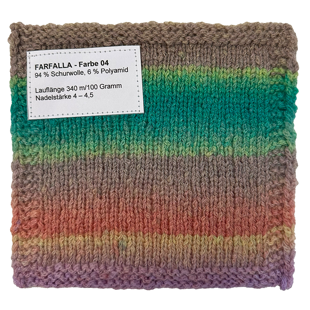Farfalla es un hilo muy especial: ligero, suave y con una estructura fina y viva que aporta un toque único a cada prenda de punto. Un detalle destacado es el delicado degradado de color que aparece por sí solo al tejer. Las transiciones suaves crean un juego de colores armonioso y vibrante, sin necesidad de patrones complicados ni cambios de hilo. Así, surgen automáticamente piezas únicas con una dinámica suave.