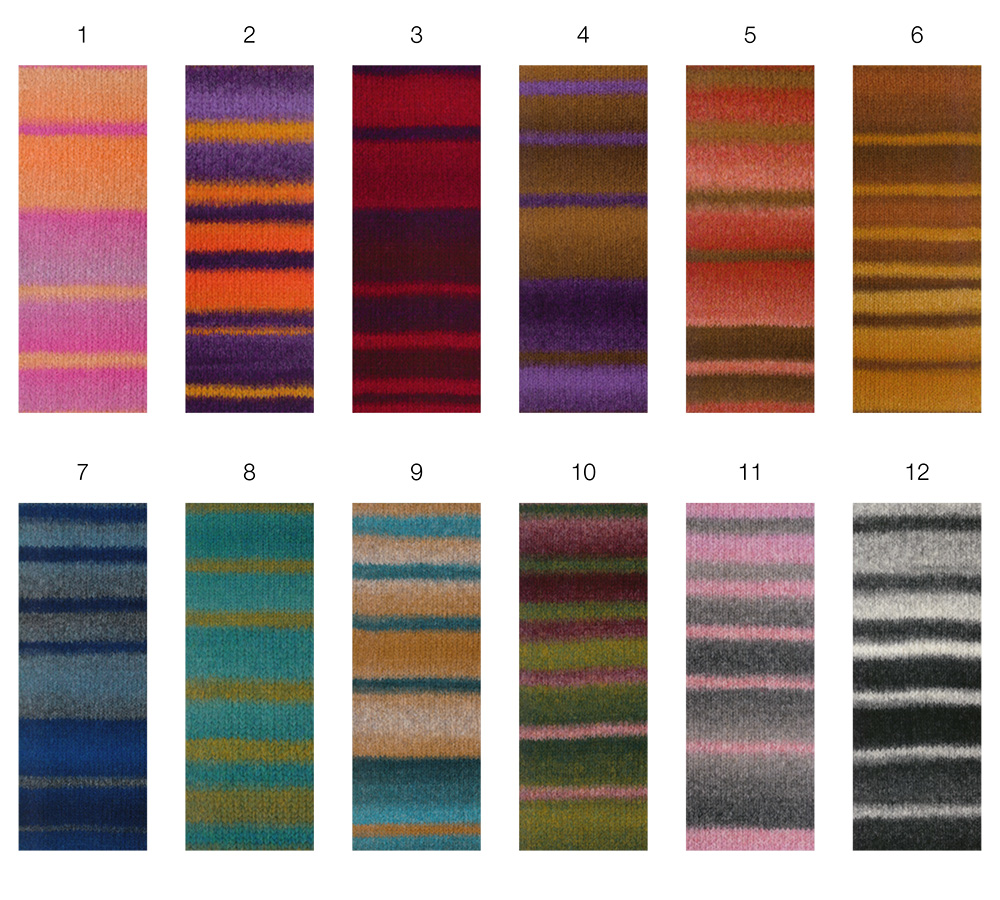 Voluminoso hilo de alpaca con efecto estructura y rayas degradadas.