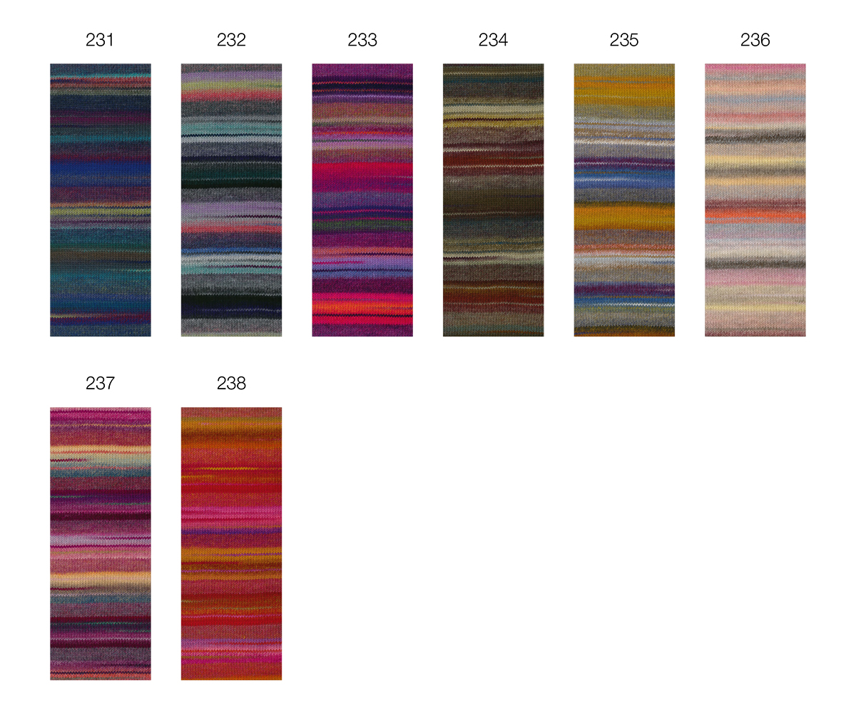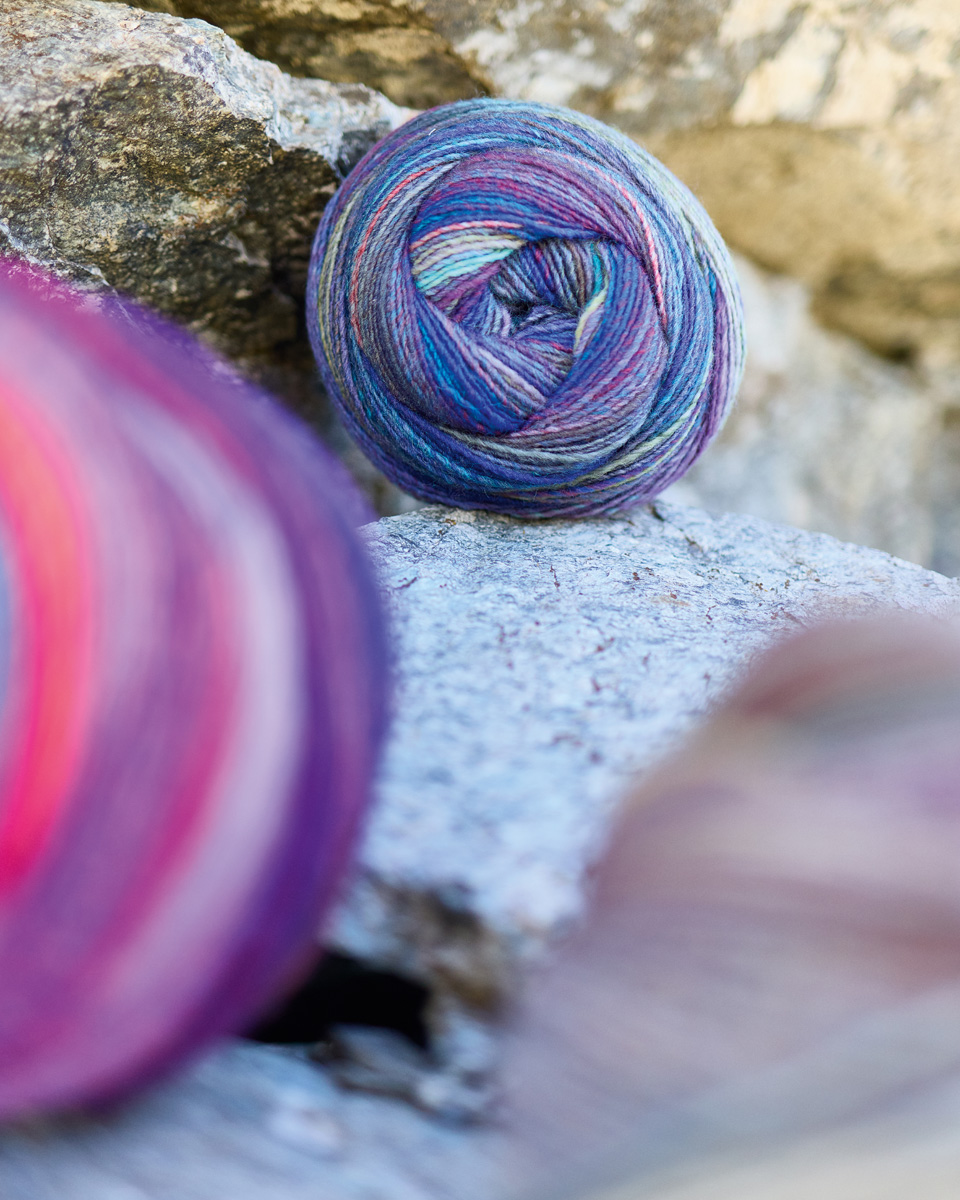 Lana Grossa Gomitolo Intenso fascina con degradados de color vibrantes y una estructura suave y voluminosa. Cada ovillo crea un juego de colores único que luce especialmente en bufandas, chales o ponchos.