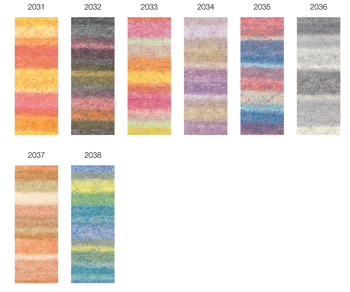 Gomitolo Mambo es un hilo con efecto degradado lleno de color y con un aspecto vibrante. Sus transiciones de color, armoniosamente combinadas, junto con una ligera textura en la superficie del hilo, convierten cada labor de punto en una verdadera pieza llamativa, sin necesidad de cambiar de ovillo ni de realizar cambios de patrón.