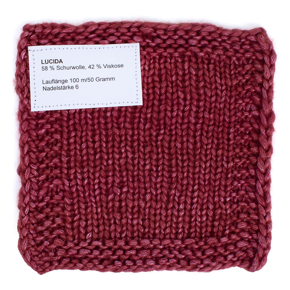 Lucida incorpora un delicado hilo metálico que le aporta un brillo sutil, elegante, moderno y muy ponible. Su reflejo discreto da un toque especial sin resultar llamativo. Es ideal para jerséis femeninos, tops sencillos o accesorios sofisticados con carácter refinado. Gracias a su agradable tacto y estructura lisa, Lucida se teje de manera uniforme y fluida.