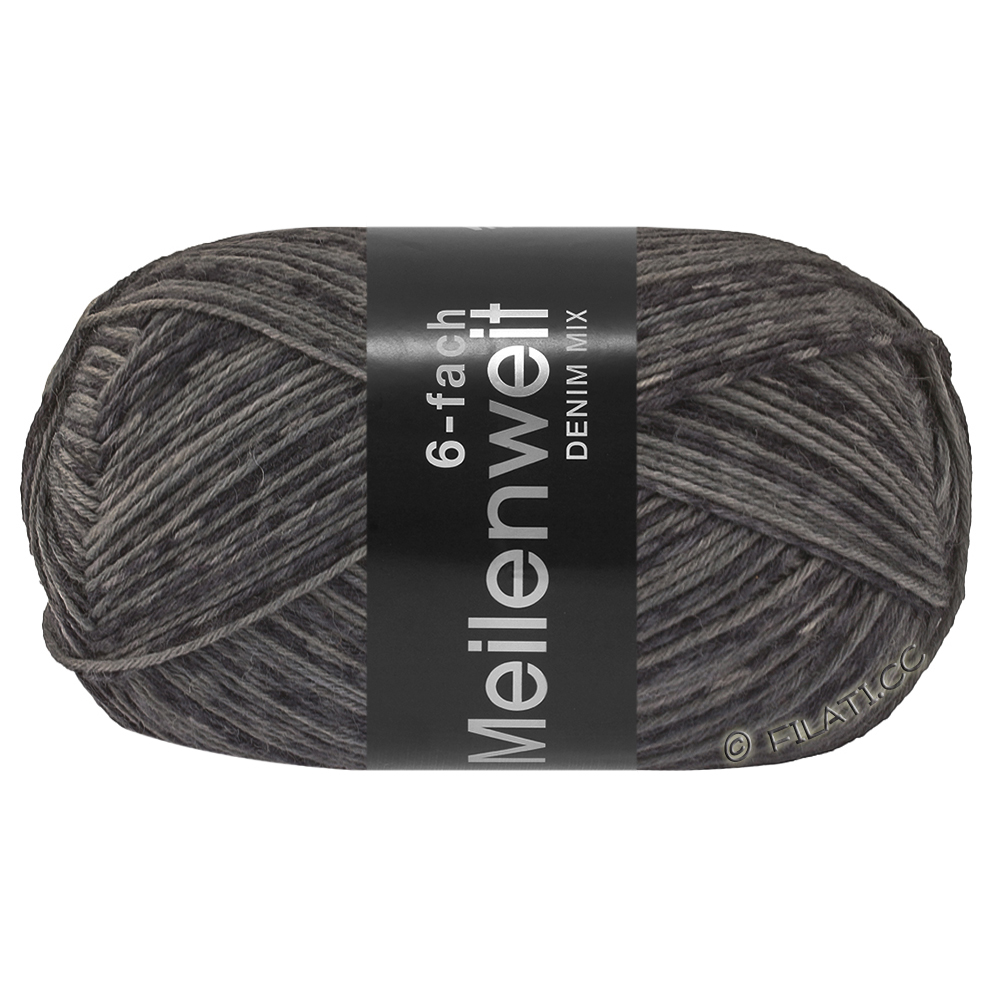 Lana Grossa Meilenweit 6-fach 150g Denim Mix combina colores vaqueros de moda con una calidad de hilo muy suave. El hilo para calcetines de 6 hebras, compuesto de lana virgen y poliamida, es especialmente cálido, ideal para calcetines resistentes.
