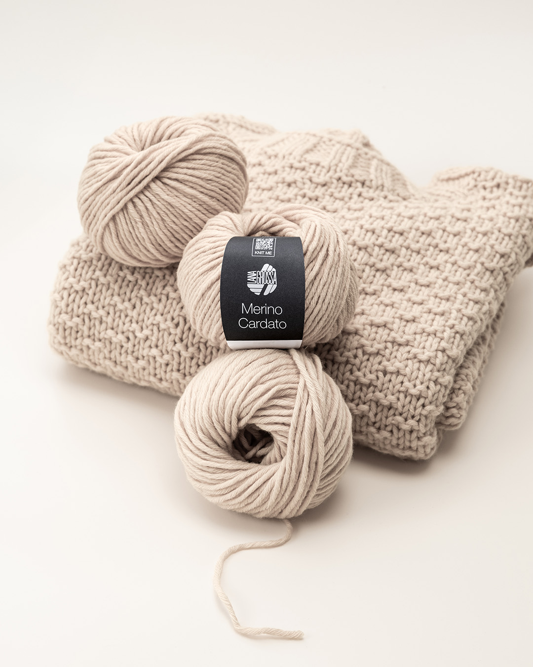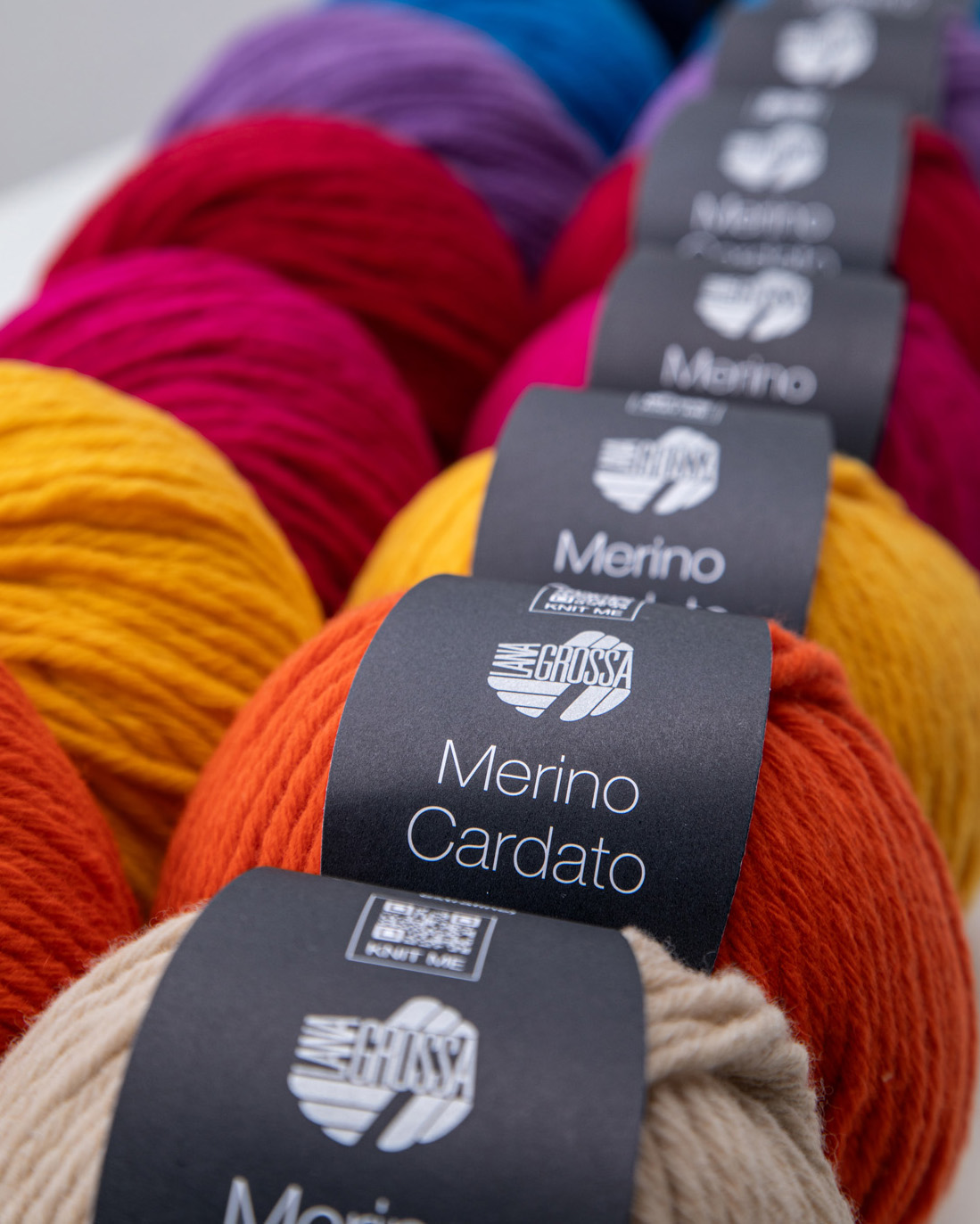 Lana Grossa Merino Cardato - el exquisito hilo de merino con textura cardada. Excepcionalmente suave, voluminoso y cálido, es perfecto para chaquetas, bufandas y accesorios. Su ligereza natural garantiza un ajuste cómodo. Este hilo es ideal para principiantes.