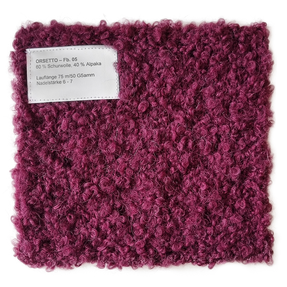Lana Grossa Orsetto es un hilo super suave y voluminoso con un efecto peluche tipo “teddy”. Su estructura ligera permite crear prendas de punto cálidas y acogedoras sin resultar pesadas.