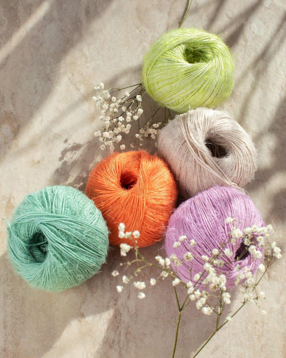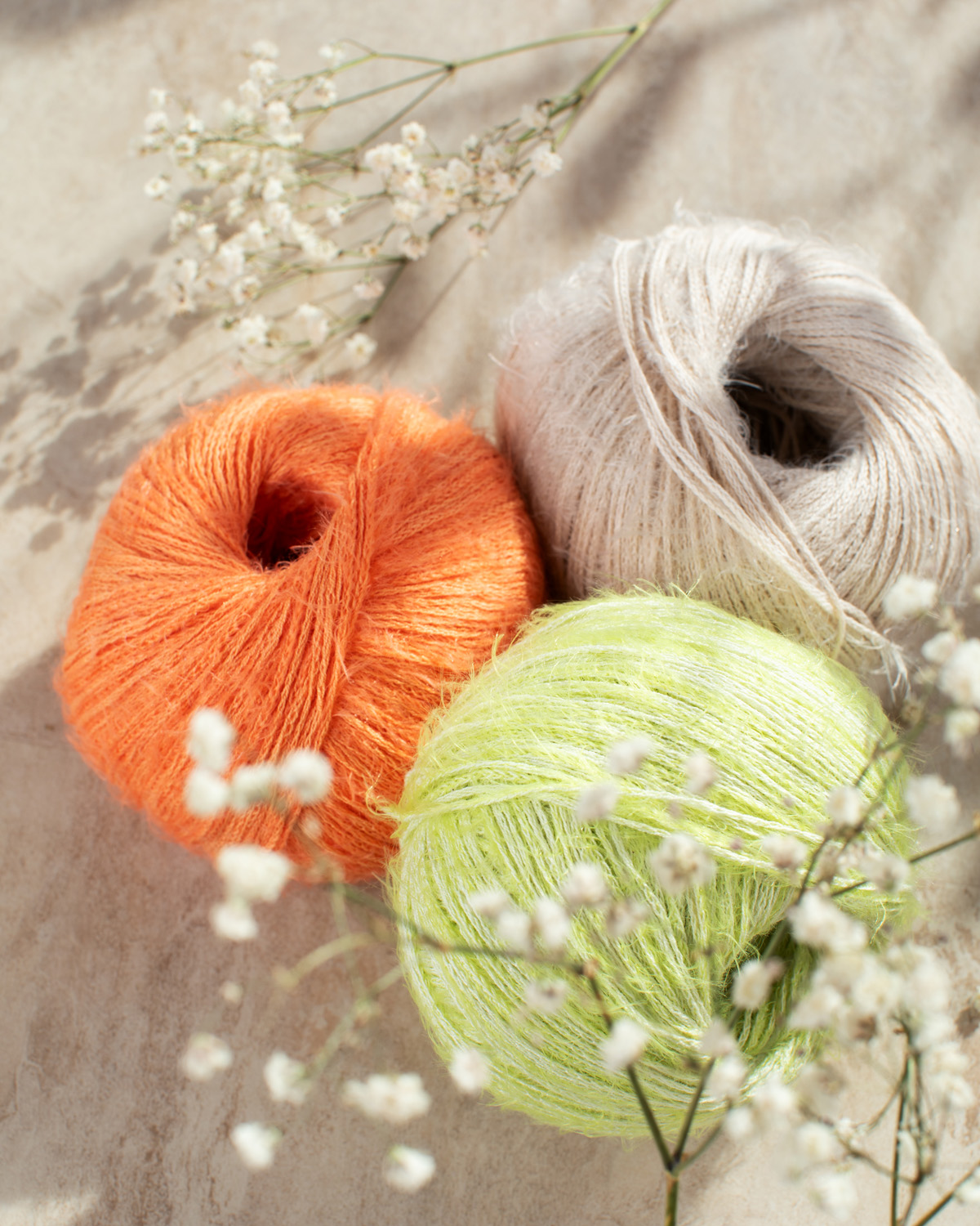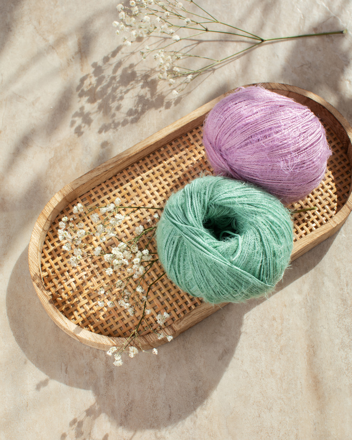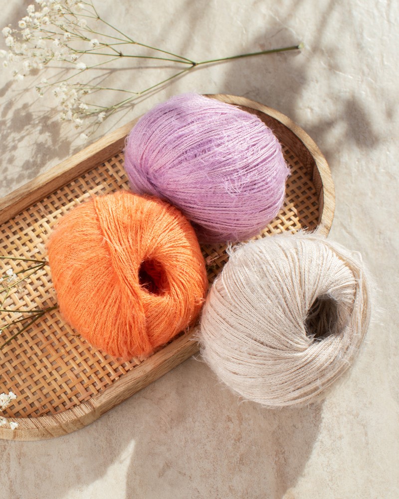 Hilo de algodón ligero con secciones suaves y brillantes y un delicado vellón.