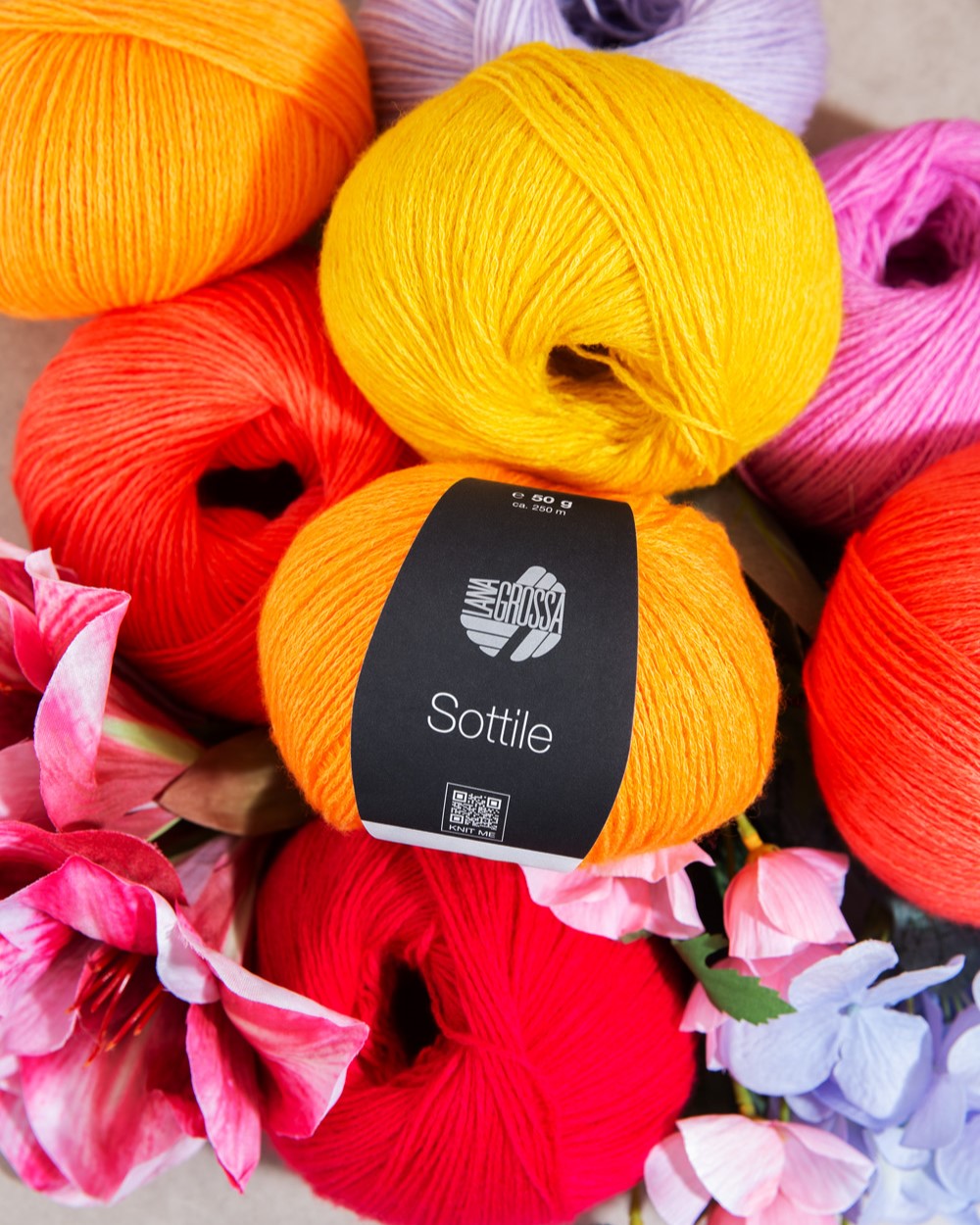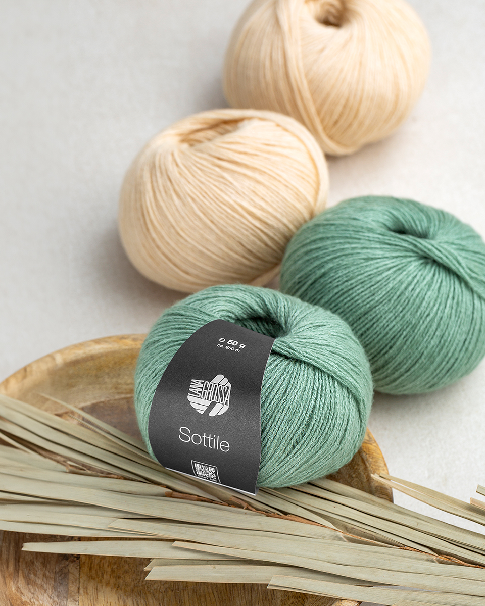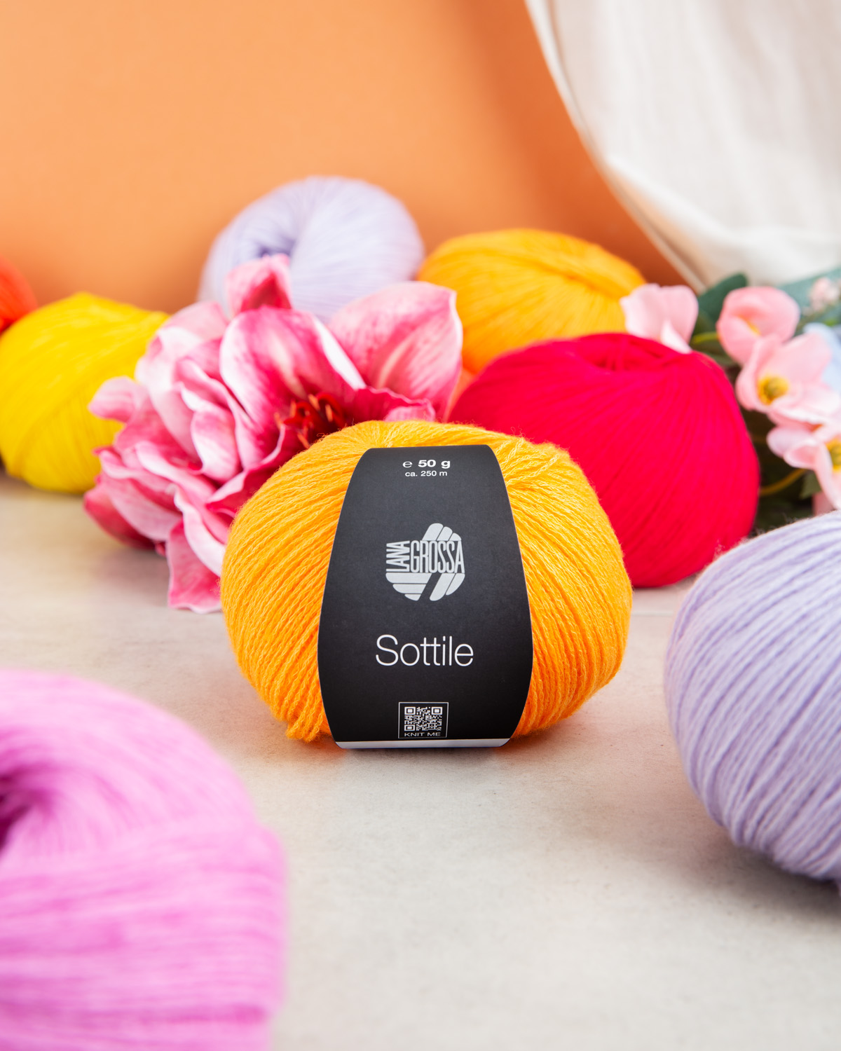 Sottile es un hilo de verano fino y liso, elaborado con una mezcla de algodón de alta calidad. Destaca por su tacto fresco, su tejido uniforme y una apariencia natural y elegante.