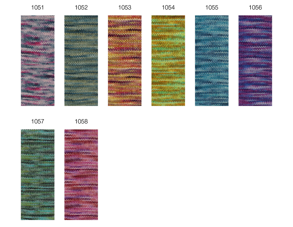 Con Vintage Socks Multi, Lana Grossa aporta vibrantes variaciones de color con un moderno look retro a tus agujas de tejer. Los diversos degradados multicolores surgen automáticamente a medida que tejes, dando a cada par de calcetines una apariencia única y nostálgica.